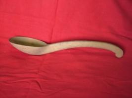| Description / विवरण | It is a wooden spoon of big size. It has a deep bowl like shape oval which is connected with a long tilted and curved handle. |