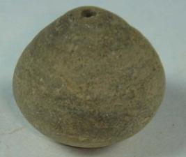 | Description / विवरण | Well made, perforated terracotta bead with a pot-shaped body and a small circular depression around perforation. It upper part is partially flaked off. |