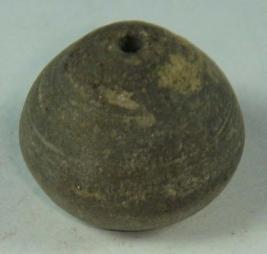 | Description / विवरण | Well fired, perforated terracotta bead, betel nut in shape with a slight depression at the base. |