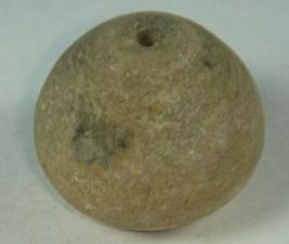 | Description / विवरण | Ill fired, perforated terracotta bead, with pot-shaped body and a circular depression at the base. Close concentric circles are present on the body which is slightly rubbed off. |