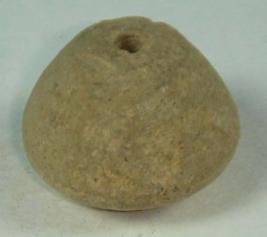 | Description / विवरण | Well made, perforated terracotta bead, betel nut in shape with a slight depression at the base. Concentric circles are visible around the base. |