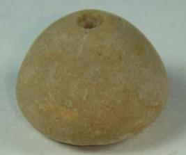 | Description / विवरण | Well made, perforated terracotta bead, betel nut in shape with slight depression at the base. It is chipped off at some parts. |
