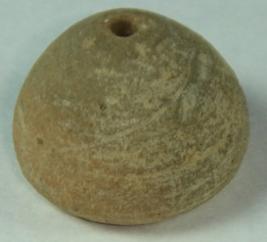 | Description / विवरण | Ill fired, perforated terracotta bead, betel nut in shape, with slight depression at the centre. |
