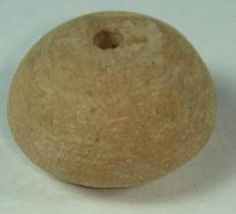 | Description / विवरण | Plain, perforated, betel nut shaped terracotta bead. Close concentric circles are present around the base. |