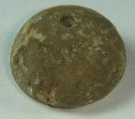 | Description / विवरण | Plain, perforated, betel nut shaped terracotta bead with slight depression at the base. Its body is slightly rubbed off. |