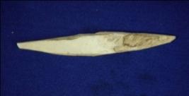 | Description / विवरण | Bone point, having a flat body and pointed ends. |