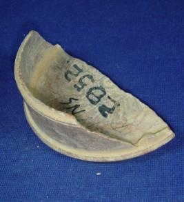 | Description / विवरण | Circular stone lid with top and broad, two tiered inner rim. The inner rim has incised geometric designs. It is broken but retouched. Some parts of rim is broken. |