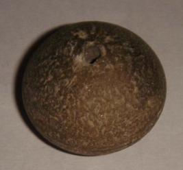 | Description / विवरण | Perforated terracotta pot shaped bead with slightly depression in the top. Close striation marks are seen on the body. |
