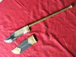 | Description / विवरण | Sword Januvi small curvy blade and the hilt of sword is Hakeem khani style with pommel. The blade is made on steel and hilt is Iron. |
