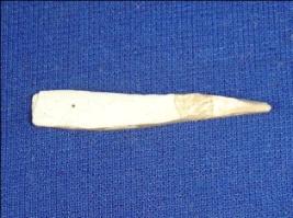 | Description / विवरण | Fragment of a Bone point having a pointed end in one side and other side is broken. |
