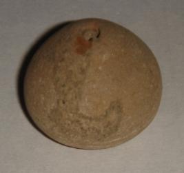 | Description / विवरण | Perforated terracotta bead, betel nut in shape and a slight depression at the base. |