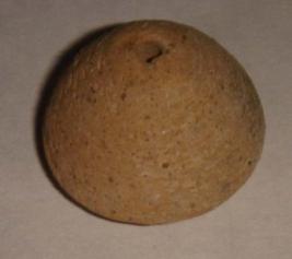 | Description / विवरण | Terracotta, perforated betel nut shaped bead with a slight depression on the base concentric circles are seen on the body. |