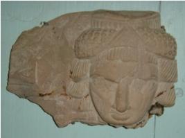 | Description / विवरण | Mutilated human head with an elaborate head gear. There are circular rings and vertical lines on the head gear |