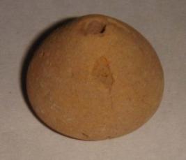 | Description / विवरण | Perforated terracotta betel nut shaped bead with a slight depression on the base. The concentric circles are seen on the body. |