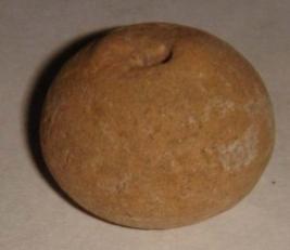 | Description / विवरण | Perforated terracotta betel nut shaped bead with a slight depression on the base. Concentric circles are visible on the body. |