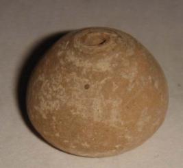 | Description / विवरण | Perforated terracotta, betel nut shaped bead, with a slight depression on the base. |