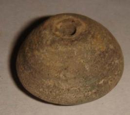 | Description / विवरण | Perforated terracotta pot shaped bead with flat circular top and flat base. Concentric circles are visible on the body. |