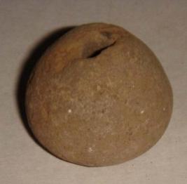 | Description / विवरण | Perforated terracotta betel nut shaped bead with a slight depression on the base. |