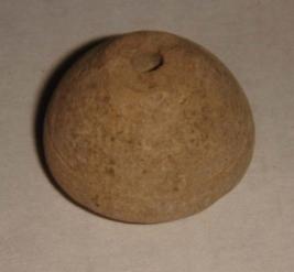 | Description / विवरण | Perforated terracotta bead, betel nut shaped with a circular deep depression on the body while the striation marks are seen on the body. |