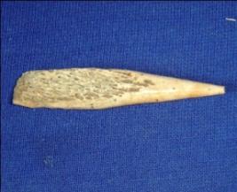 | Description / विवरण | Fragment of a Bone point having one pointed end and other side is broken. |