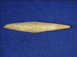 | Description / विवरण | Bone point with a broad middle portion and pointed ends. |