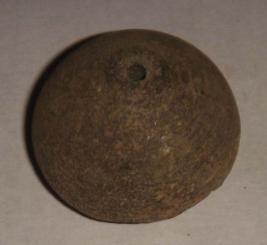 | Description / विवरण | Perforated terracotta bead, betel nut in shape and slightly depression at the base. |