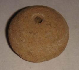 | Description / विवरण | Perforated terracotta bead, pot shaped body with a depression on top and base. |