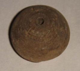 | Description / विवरण | Perforated terracotta bead, betel nut body with striation marks. It is ill fired. |
