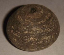 | Description / विवरण | Perforated terracotta bead, betel nut body, base with slight depression. |