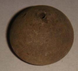 | Description / विवरण | Perforated terracotta bead, betel nut body with slight depression of base. |