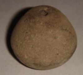 | Description / विवरण | Perforated terracotta bead, betel nut body with slight depression at one tip. |