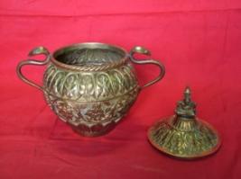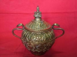 | Description / विवरण | Ganesh Katora of brass, engraved with floral bands on the bowl, handles shaped like Snakes. The image of Ganesh is on the top. |