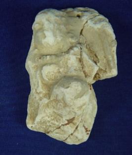 | Description / विवरण | Lime female figurine with prominent head and body upto waist, hands and legs are missing. Her right eye is visible and she is adorned with a pearl necklace. |
