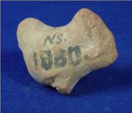 | Description / विवरण | Terracotta animal figurine without head, broken limbs and tail. There is a perforated hole in the middle of the body. Slight parts are worn off from the tail. It was probably used as hanging or in toy cart. |