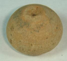 | Description / विवरण | Terracotta bead with a flat circular base, a small depression at the centre. There is a perforated hole at the centre to put it in a string. |