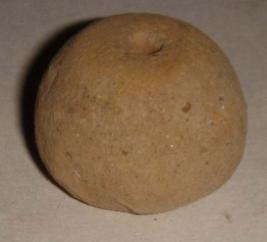 | Description / विवरण | Perforated terracotta bead, betel nut body, base with slight depression. The upper tip is flat. |