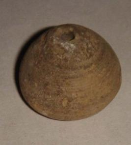 | Description / विवरण | Perforated terracotta bead, betel nut body, base is slightly depressed. |