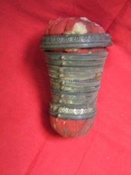 | Description / विवरण | It is a bangle set made up of wood. This set includes six pieces having varying diameters. Two bangles has design and the rest of the bangles are having plain surface. |