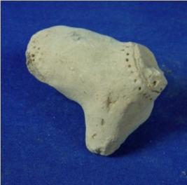 | Description / विवरण | Coarse terracotta animal figurine only the body part is available. The left hind limb and right fore limb is visible. The head is missing and there are some incised dots in the neck. |
