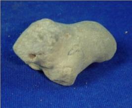| Description / विवरण | Coarse, terracotta animal figurine, may be a dog with prominent eyes, missing mouth, and limbs. Other features are not prominent. |