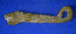 | Description / विवरण | Fragment of iron tool having one end broken while another end is pointed bend in circular manner, probably a part of handle of an iron tool. |