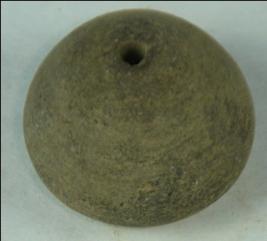 | Description / विवरण | Terracotta perforated bead, betel nut in shape and without any decoration. |