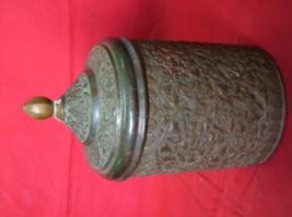 | Description / विवरण | Biscuit box with floral designs and depicting birds. |