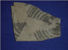 | Description / विवरण | Potsherd of painted grey ware, probably of any disc. The outer surface is without any decoration but inner surface is painted with curved lines. |