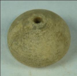 | Description / विवरण | Perforated bead with betel nut body, with close striation marks. The base is slightly depressed in circular fashion. |