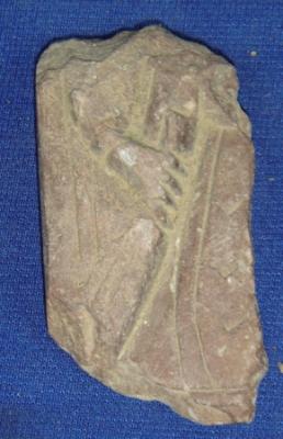 | Description / विवरण | fragment of sculpture, features are not prominent only the right hand is shown. |