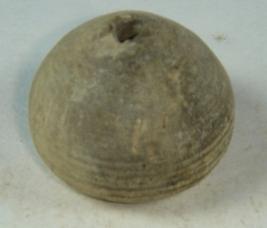 | Description / विवरण | Perforated terracotta bead, betel nut body, with slight depression at base. |