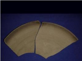 | Description / विवरण | Painted grey ware potsherd of a rimed dish, circular in shape and having flat base. It is broken into two pieces, having sparse striation marks on its inner part of the base. It is broken into two pieces. |