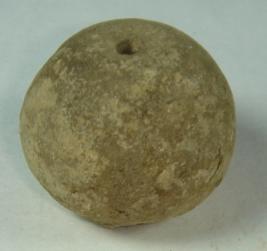 | Description / विवरण | Perforated terracotta bead, spherical in shape with flattened tips. |