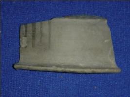 | Description / विवरण | Potsherd of a painted grey ware pottery with slightly outward rim, having vertical line designs on both sides. |